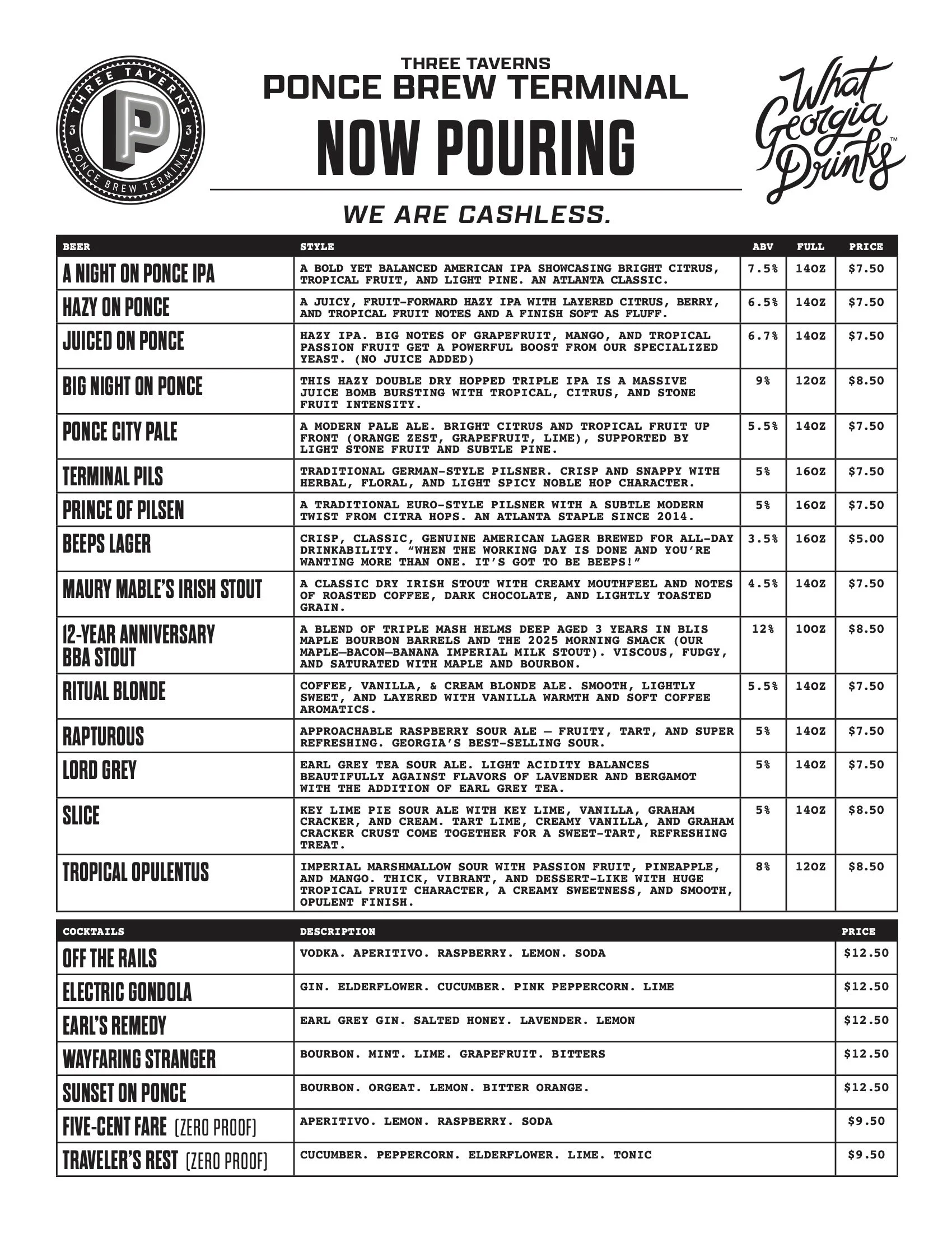 Ponce Brew Terminal Drink & Food Menus
